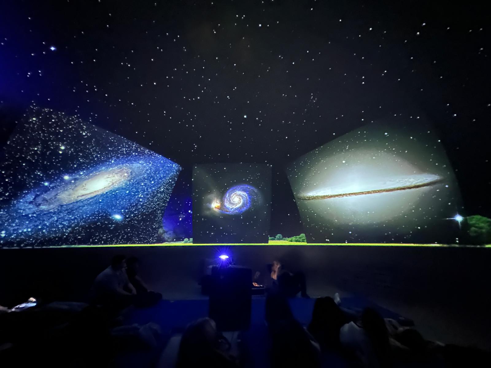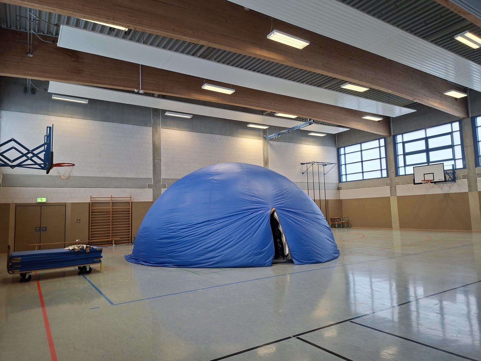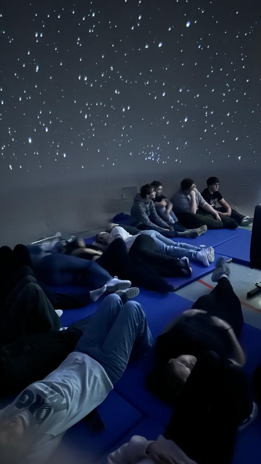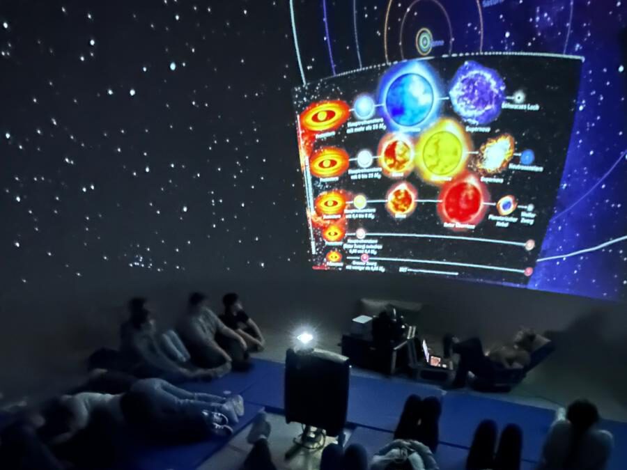 Am 04.11.2025 hatten wir in der 10. Klasse ein Astronomieprojekt. In der Turnhalle wurde dafür eine riesige Kuppel mit Luft aufgeblasen, die wie ein richtiges Planetarium funktioniert hat. Der Physiker Max Ouaas ist extra mit seinem mobilen Planetarium an unsere Schule gekommen und hat uns Vieles über das Weltall und das Universum erzählt. Es war spannend zu sehen, wie Sterne, Planeten und Galaxien darin dargestellt wurden.