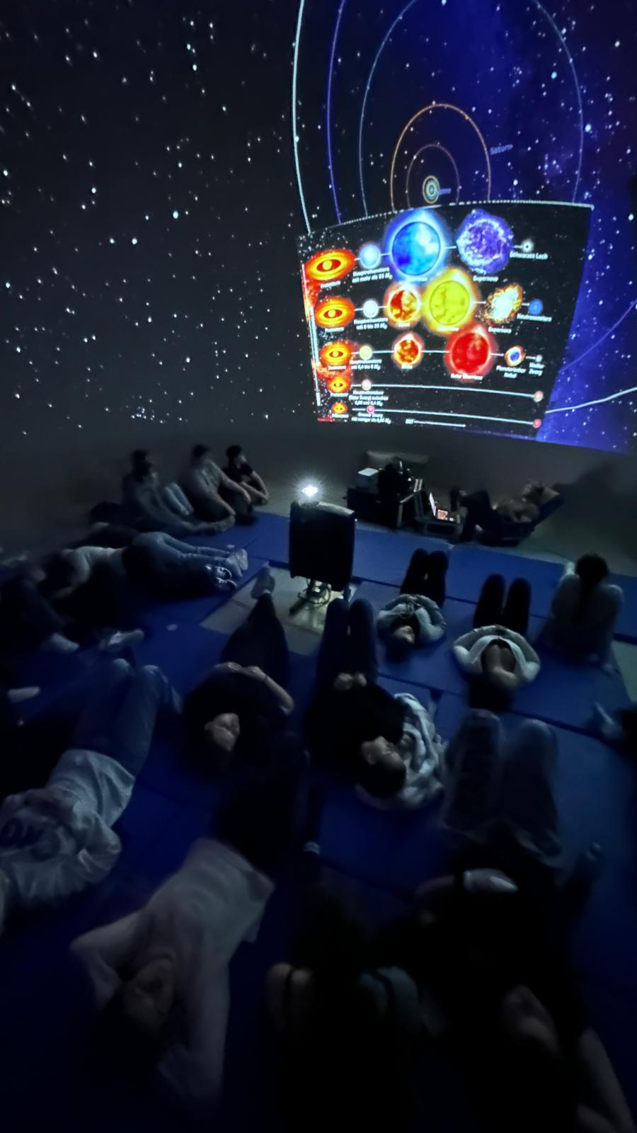 Am 04.11.2025 hatten wir in der 10. Klasse ein Astronomieprojekt. In der Turnhalle wurde dafür eine riesige Kuppel mit Luft aufgeblasen, die wie ein richtiges